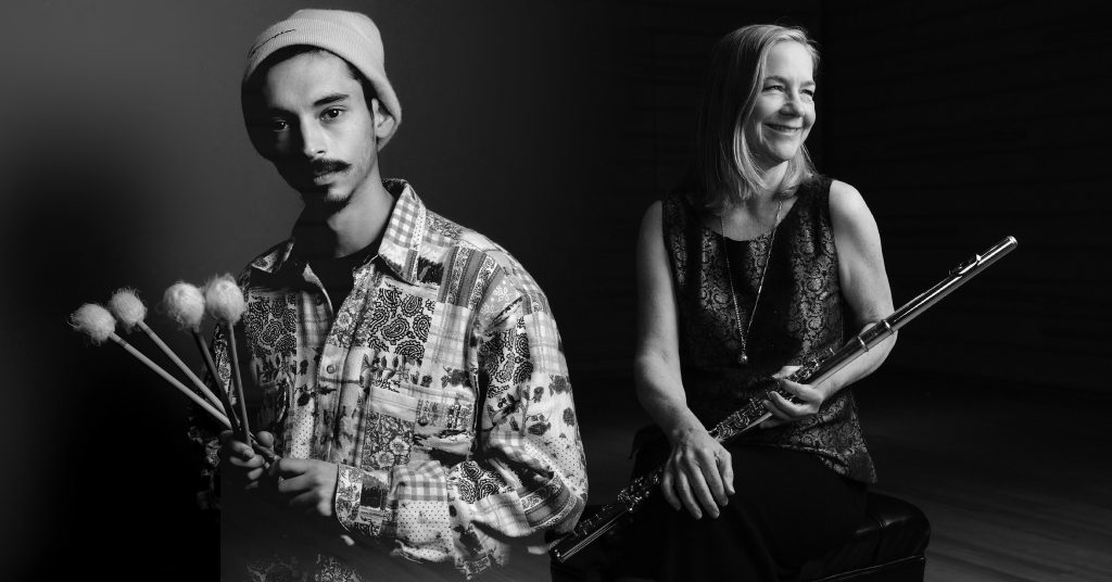 O programa escolhido pelo Duo para Tomar incide sobre algumas das obras gravadas no CD referido e outras por nós selecionadas. O neologismo “(flut)uações” realça a importância da flauta (flute, em inglês) mas, sobretudo, a sensação de flutuar…uma certa gentileza, uma brisa, o ondular de timbres instrumentais e combinações de texturas. Fundamental ao conceito é a utilização de vários instrumentos por cada músico —vibrafone, marimba, e vários tambores e sinos pelo percussionista; flauta em dó, baixo, contrabaixo, e bansuri, pela flautista — em busca de um diálogo sempre variado. Resistindo a uma utilização brutal da percussão ou frenética da flauta, vamos ao encontro de uma contemporaneidade musical repleta de alma e beleza.